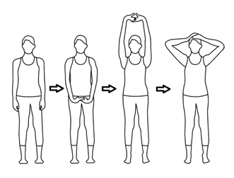 - हाथों को ऊपर की ओर उठाएं और शरीर को लंबा करें।