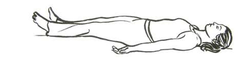 - पीठ के बल लेट जाएं और शरीर को पूरी तरह से ढीला छोड़ दें।