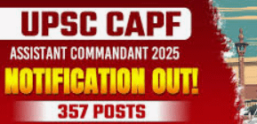 📢 संघ लोक सेवा आयोग (UPSC) ने केंद्रीय सशस्त्र पुलिस बल (CAPF) असिस्टेंट कमांडेंट परीक्षा 2025 के लिए 357 पदों पर भर्ती की घोषणा की है। यह उन उम्मीदवारों के लिए शानदार अवसर है, जो देश की रक्षा सेवाओं में एक प्रतिष्ठित पद प्राप्त करना चाहते हैं। इच्छुक और योग्य उम्मीदवार 25 मार्च 2025 तक ऑनलाइन आवेदन कर सकते हैं।